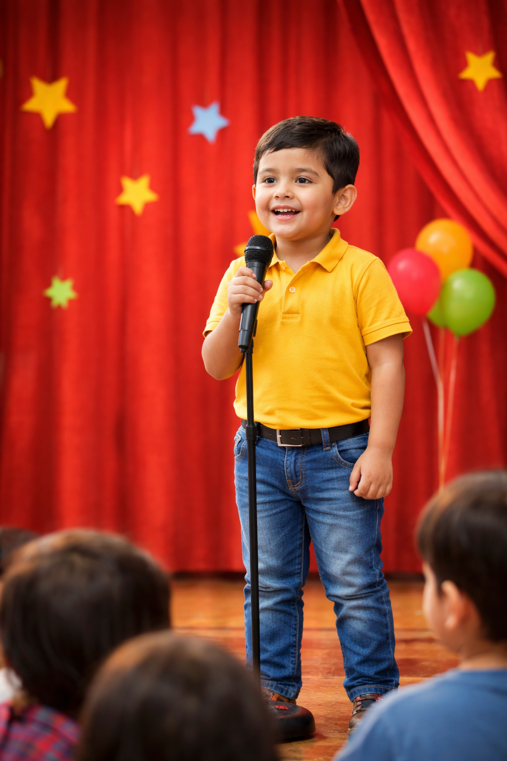 We nurture confidence through storytelling, show-and-tell, and stage activities. Children gradually build communication skills and overcome stage fear naturally.